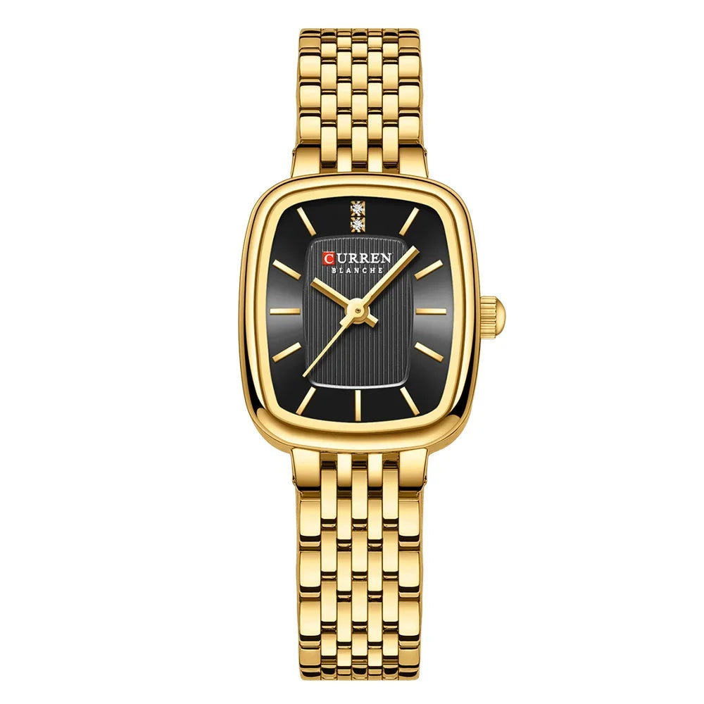 The Bella Pulse Watch combines sleek design with reliable functionality. Featuring a 23mm rectangular alloy case and a durable stainless steel band measuring 21mm in length and 12mm in width, it offers a comfortable fit with a secure bracelet clasp. The hardlex dial window protects the minimalist, numberless display powered by precise quartz movement. Water-resistant up to 3 bar, this watch suits everyday wear while maintaining a fashionable and casual style. Its 9mm thickness ensures a slim profile, making it an expert choice for those seeking both elegance and practicality.