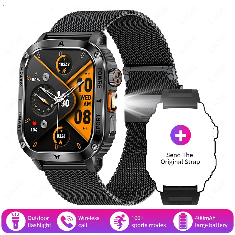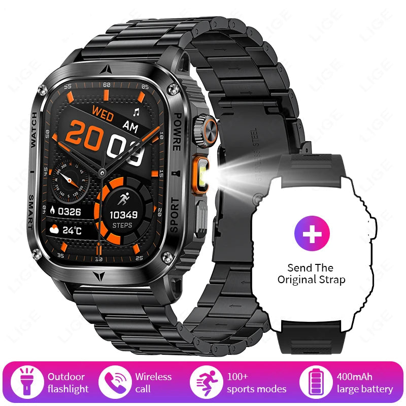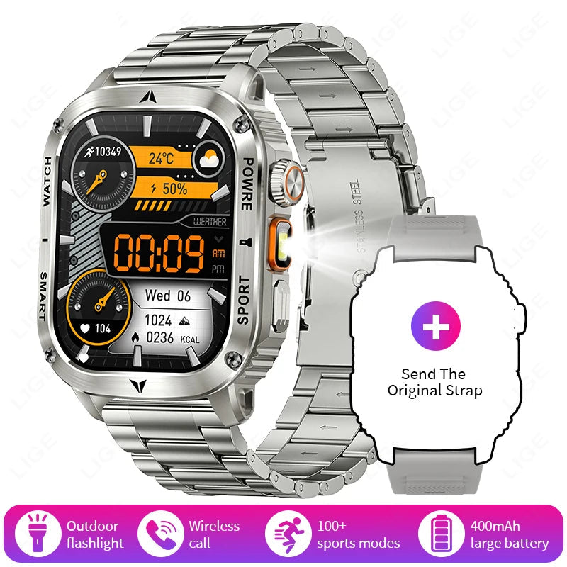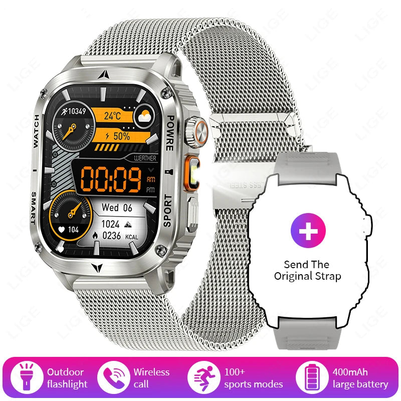 The Explore Elegance smartwatch by LIGE combines advanced fitness tracking with seamless connectivity. Featuring a 2.01-inch digital glass display and a durable alloy case, it monitors steps, distance, calories, sleep, and altitude. Equipped with Bluetooth 5.1 and compatible with all devices, it supports call and message reminders, as well as call answering and dialing. The silica gel detachable band ensures comfort during extended wear. Powered by a 300-450mAh battery, it offers up to 5.5 days of use. Certified by CE, FCC, and RoHS, this smartwatch delivers reliable performance for the modern man.
