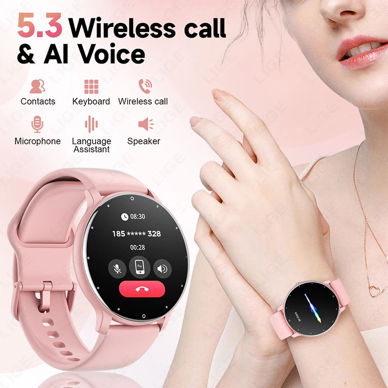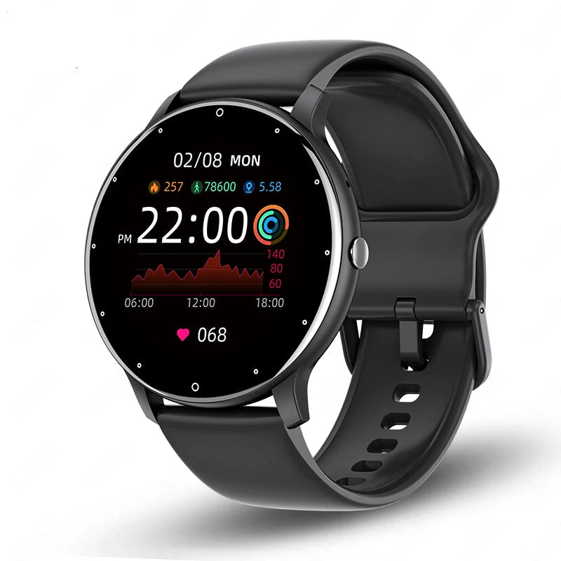 The Grace Touch smartwatch offers comprehensive activity tracking including steps, distance, calories, and heart rate monitoring. Featuring a 1.28-inch digital display and a durable rubber band, it supports call and message reminders, sleep tracking, and fitness functions. Compatible with both Android and iOS via Bluetooth 5.0, it provides up to 7 days of battery life. Additional features include a chronograph, alarm clock, world time, thermometer, and interactive music control, making it a versatile health and lifestyle companion.,