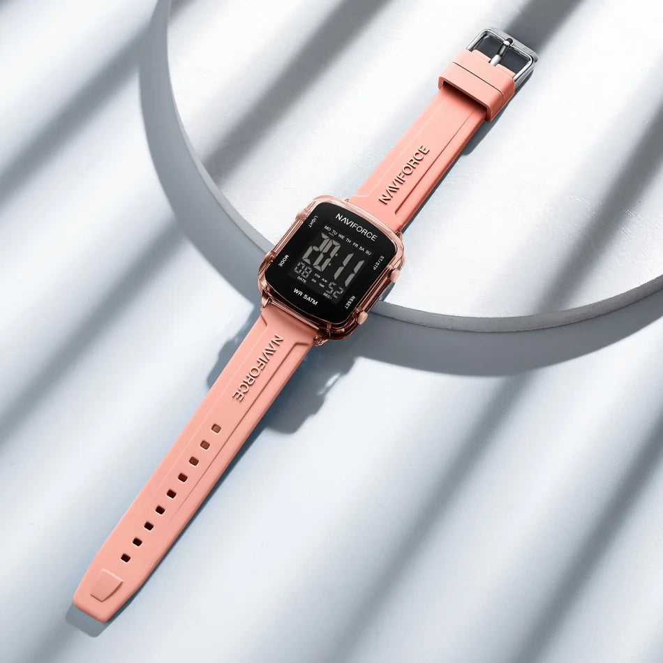 The Majestic Watch combines a sleek, simple design with practical features ideal for everyday use. Its 34mm acrylic dial with luminous hands and LED display ensures clear visibility, while the durable silicone sport band offers comfort and flexibility. Certified CE and water-resistant up to 5ATM, this digital timepiece includes a complete calendar, alarm, and week display, making it a reliable companion for active lifestyles. The lightweight plastic rectangular case and secure buckle clasp complete this expertly crafted watch designed for both function and style.
