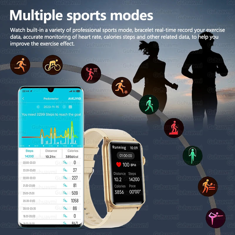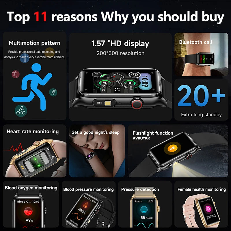 This smart watch combines a vibrant 1.57-inch AMOLED HD screen with durable sapphire crystal for clear, lasting visibility. Crafted with an alloy case and a comfortable silica gel band, it tracks your activities, including steps, distance, and calories, through the Hband app. Featuring MediaTek’s efficient CPU and Bluetooth 5.3, it offers seamless connectivity and a magnetic charging system with up to 7 days of battery life. Certified for quality and safety, this versatile device supports your daily health and fitness goals with ease.