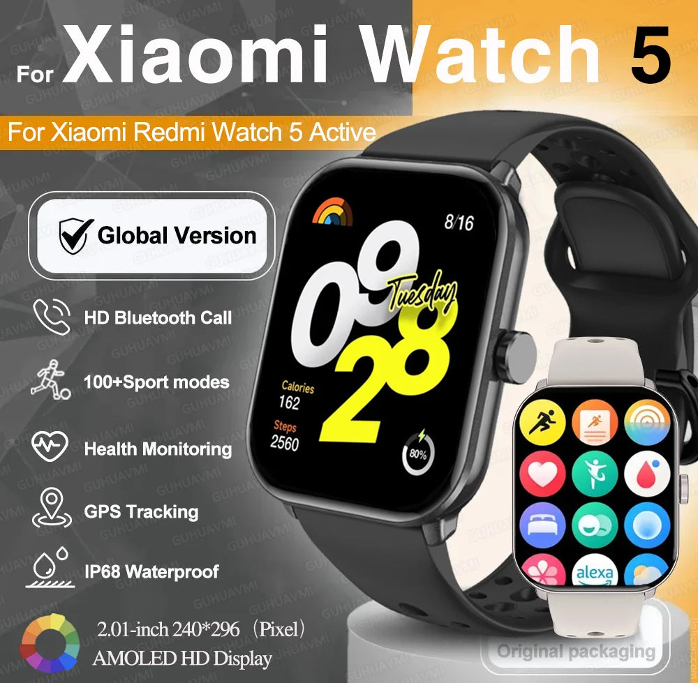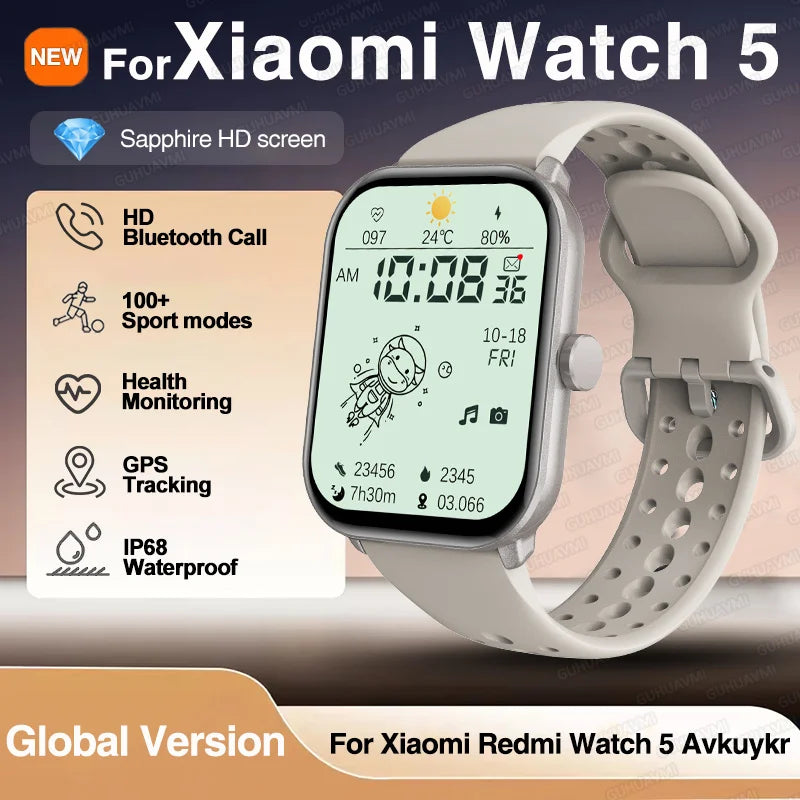 Experience limitless possibilities with the Xiaomi Watch 5, designed for both men and women. Featuring a vibrant HD AMOLED display and over 100 sports modes, it keeps you motivated and informed. With IP68 swimming-grade waterproofing, Bluetooth 5.3 for low-power connectivity, and GPS tracking, it supports your active lifestyle seamlessly. Monitor your heart rate, track steps, distance, and calories, and enjoy Bluetooth calling and music control. The detachable silica gel band ensures comfort, while the AI voice assistant enhances functionality. Compatible with the XOfit app, this smartwatch is your perfect companion for health and fitness. smartwatch