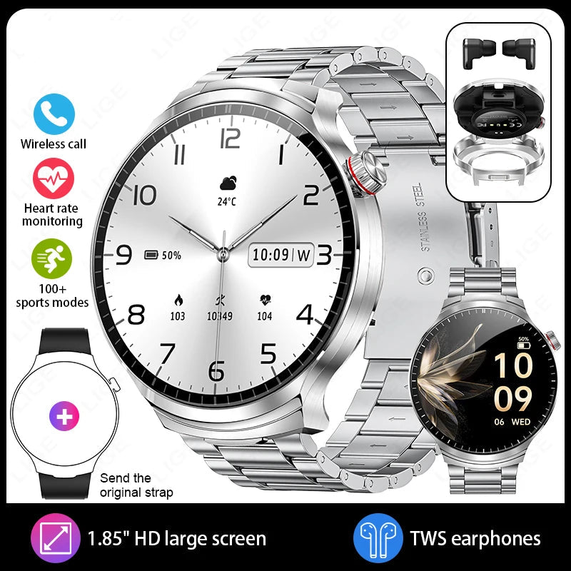 The Senior Assistant smartwatch offers comprehensive health and activity tracking with features including step counting, distance measurement, calorie monitoring, and sleep analysis. Its a 1.85-inch digital display with glass dial window ensures clear visibility, while the alloy case and silica gel band provide durability and comfort. Equipped with Bluetooth 5.0, it supports call and message reminders, call answering, and dialing. The watch also includes advanced functions such as an altitude meter, chronograph, world time, and alarm clock. With a detachable 300-450mAh battery lasting up to 3 days, it is compatible with all devices and certified for quality and safety.