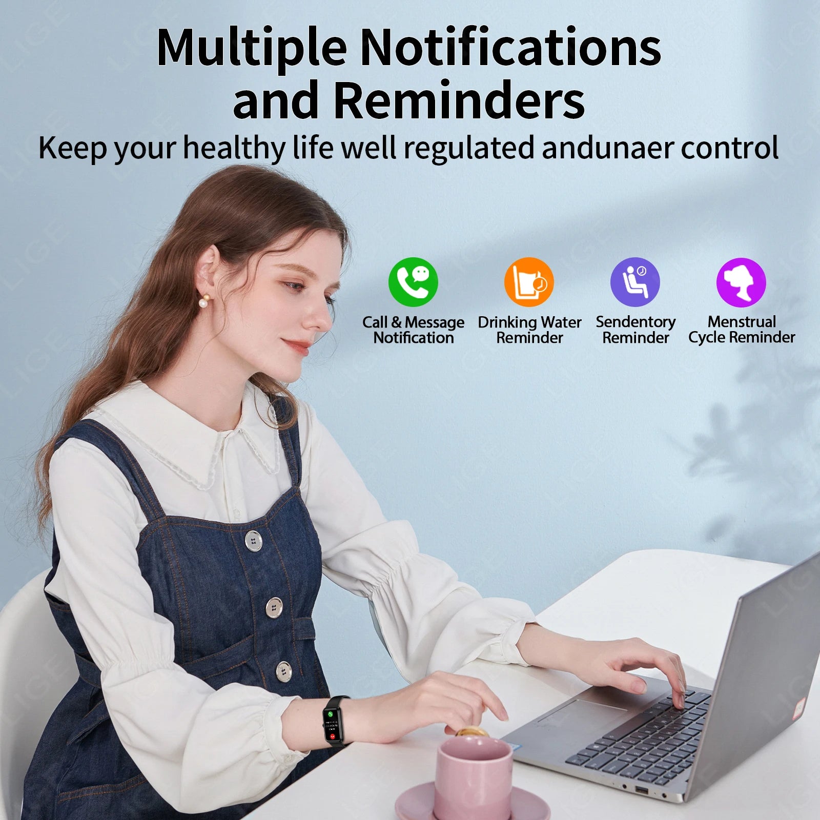 This Smart Bracelet combines advanced fitness tracking with seamless connectivity. Featuring a 1.47-inch analog-digital glass display and a durable, detachable silica gel RoHS-certified band, it monitors steps, distance, calories, sleep, and various activities. Powered by a JL7014 CPU and Bluetooth 5.3, it supports call and message reminders, remote control, and world time functions. With a 180-220mAh battery offering up to 3 days of use, this CE, FCC, and RoHS certified device is compatible with all smartphones and managed via the Dee Fit app for comprehensive health and activity insights.