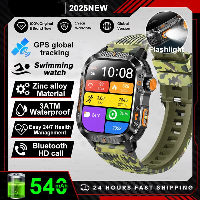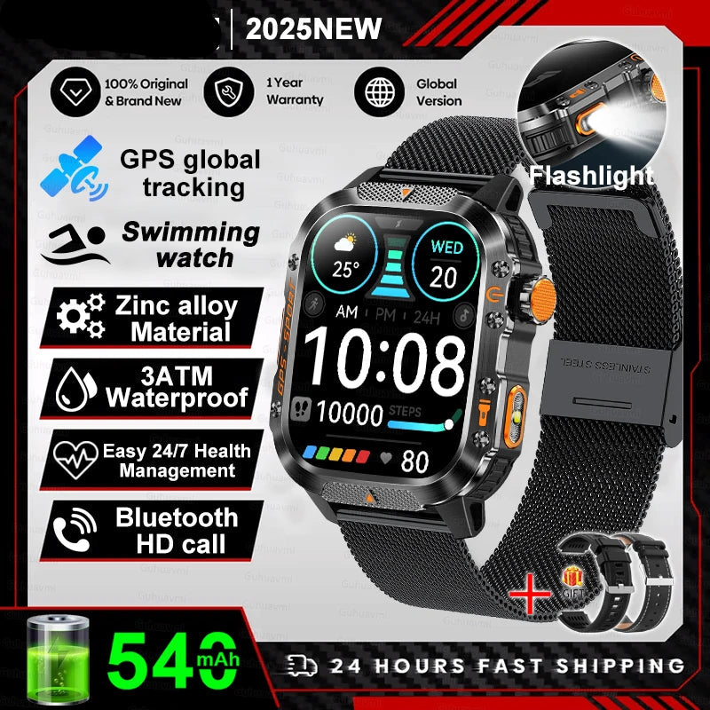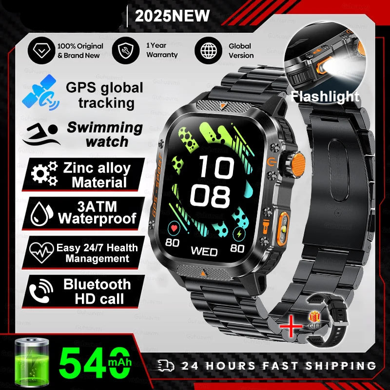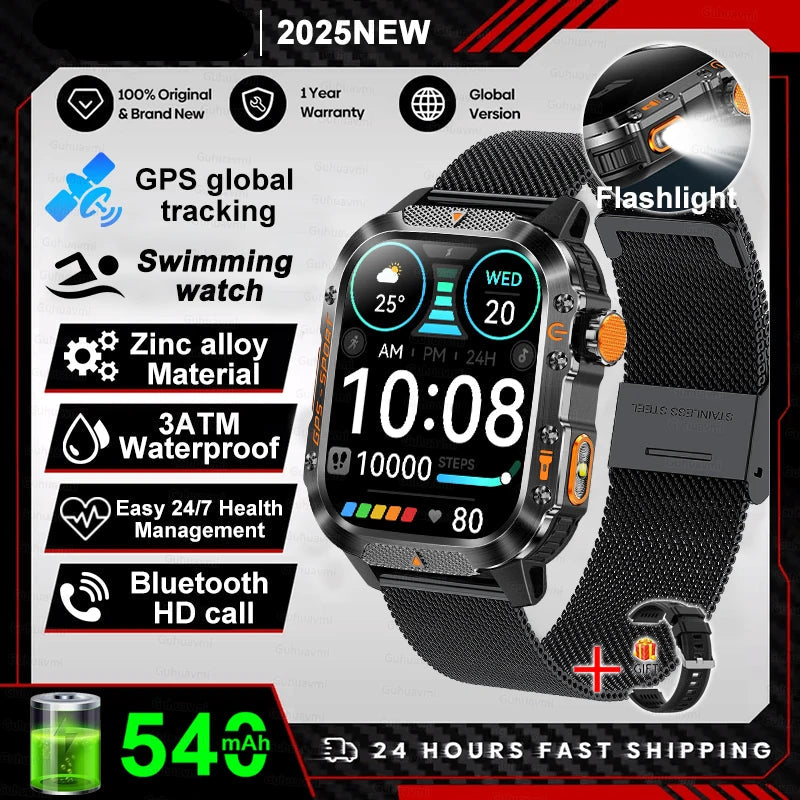 Experience versatile fitness and outdoor tracking with the Zyra Watch, a military-grade GPS smartwatch designed for adults. Featuring over 100 sports modes and advanced activity tracking—including steps, distance, and calories—this watch helps you stay motivated throughout your day. Equipped with Bluetooth 5.3 for efficient connectivity and a durable silica gel band, it offers comfort and reliability. With a battery life lasting up to 7 days and a powerful MediaTek CPU, Zyra combines performance with style, encased in precious metals. The included accessories and the GloryFitPro app enhance your fitness journey seamlessly.